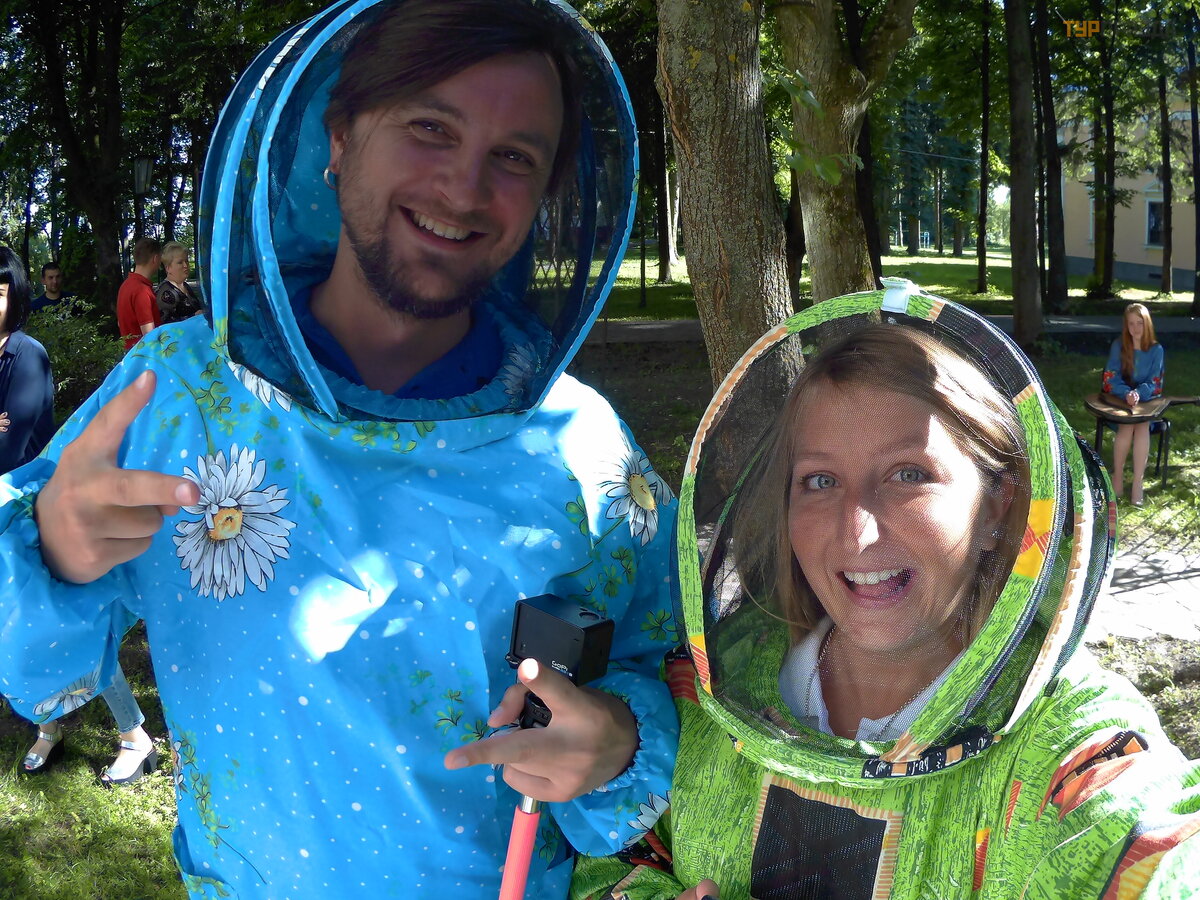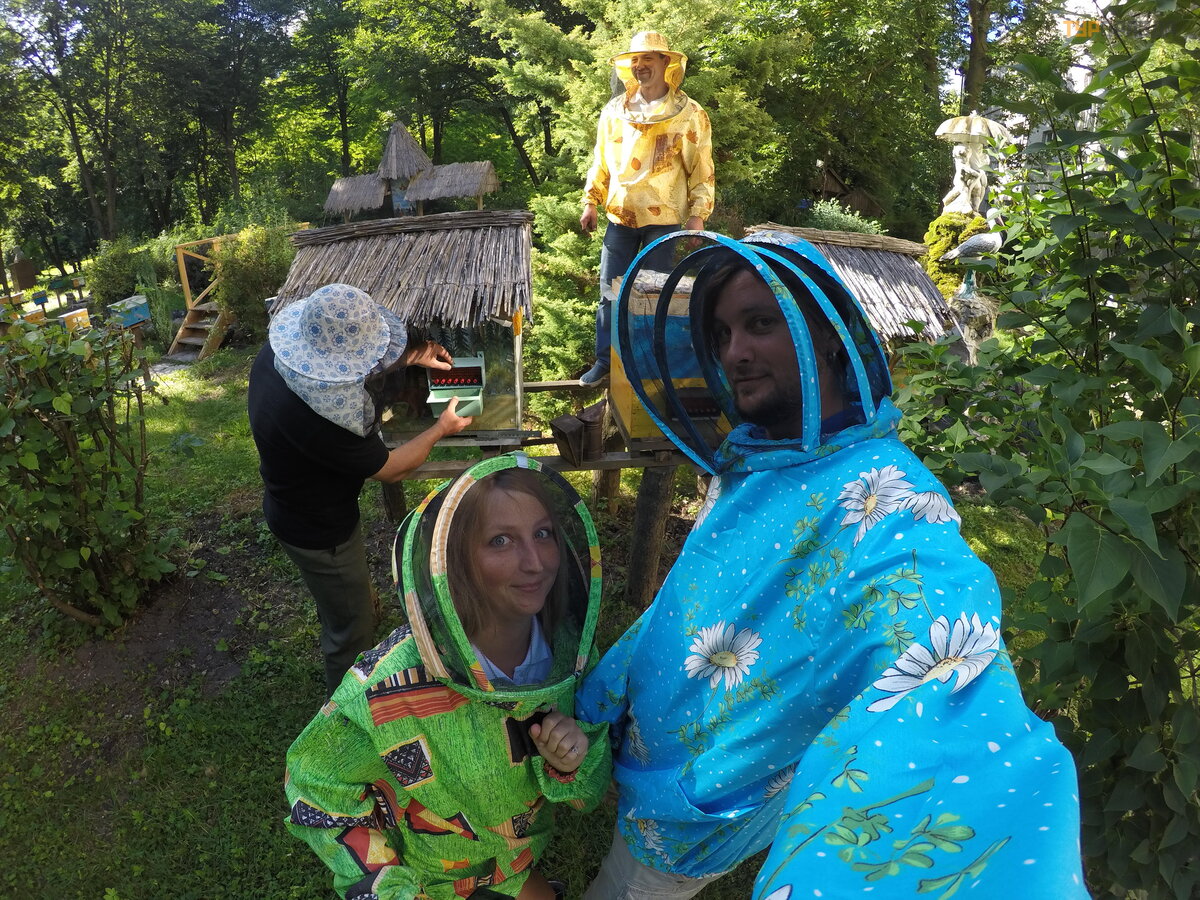 And then we were dressed in special costumes. We immediately became like teletubbies. And we went to get acquainted with bees, with honey.