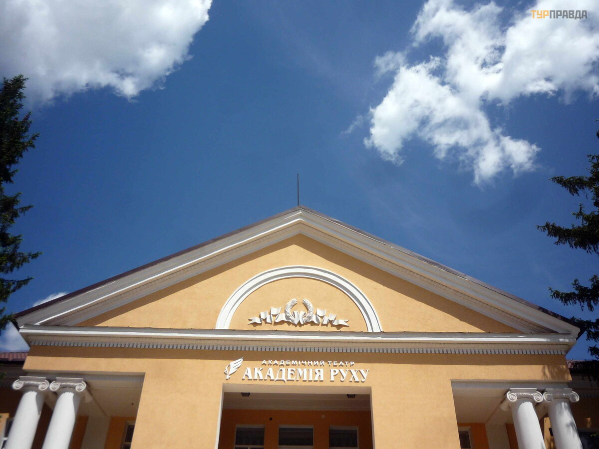 Behind the square you can see the portico and the facade of the temple of arts. Kryvyi Rih Academic Theater of Musical and Plastic Arts "Academy of Movement" opened its doors in 1994. Although, its history began much earlier.