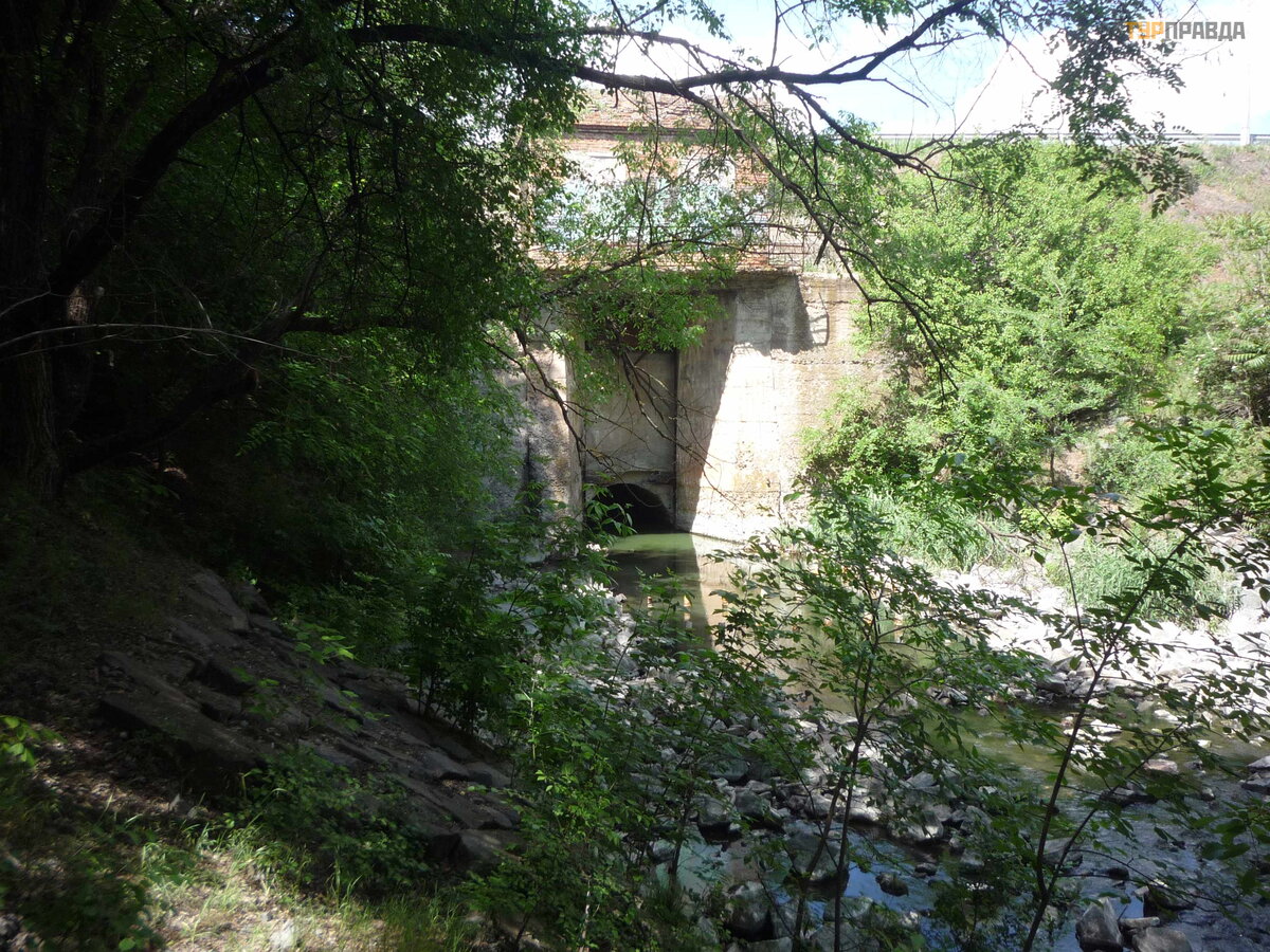 A steep path leads to a ravine overgrown with trees and shrubs. From here you can clearly see the vent in the dam from where the water flows. Interestingly, in the section of the Saksagan mine - Chernogorka, the Saksagan River flows in an underground collector. During the construction of quarries, the riverbed was artificially changed in several places. And now another turn is being considered.