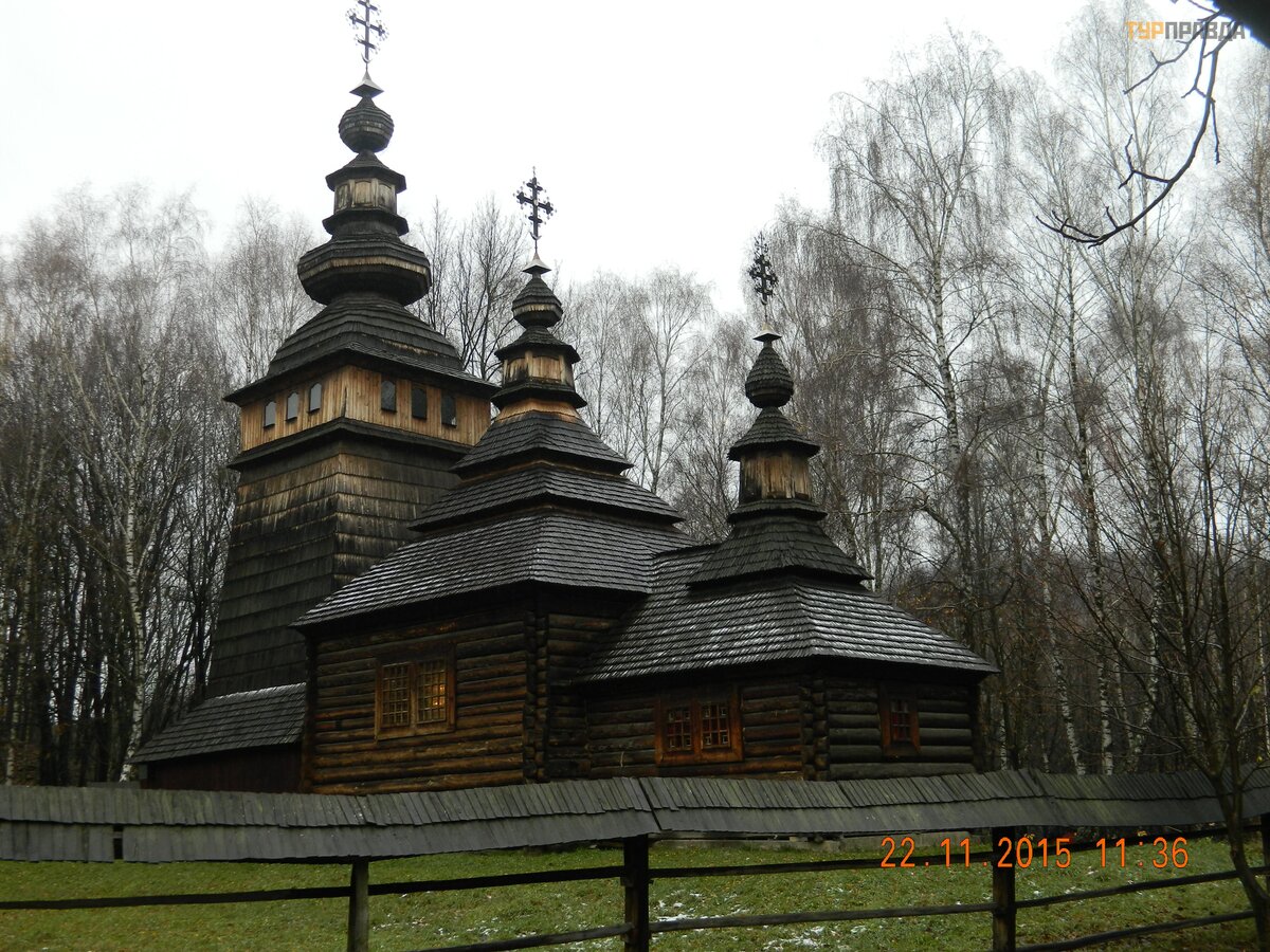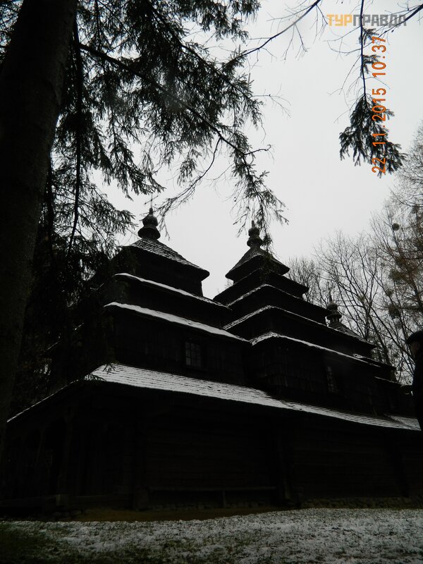 And because of the bad weather we saw not so much: part of Boykivshchyna, Lemkivshchyna and Hutsulshchyna. There are seven temples in the open-air museum (this is the largest collection of temples in the world in one open-air museum). All temples are in operation. And all have a sea of parishioners. We were lucky: we were inside the Nikolaev church of 1763 of a birth. The church is a masterpiece of world architecture and a UNESCO World Heritage Site: