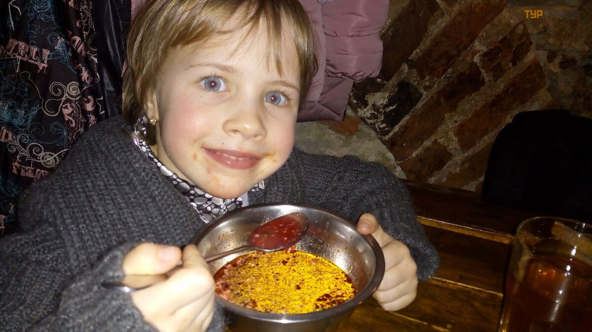 We decided to go to the notorious Kryivka for 40 minutes in a row, and we come in, the place is bright, at the entrance you have to say "Glory to Ukraine, Glory to the Heroes" then you are given 50 grams of mead or shit at the entrance, only then you go down the hall. Ukrainian cuisine, Borsch with donuts, dumplings with cracklings, banosh, mushroom soup, etc.