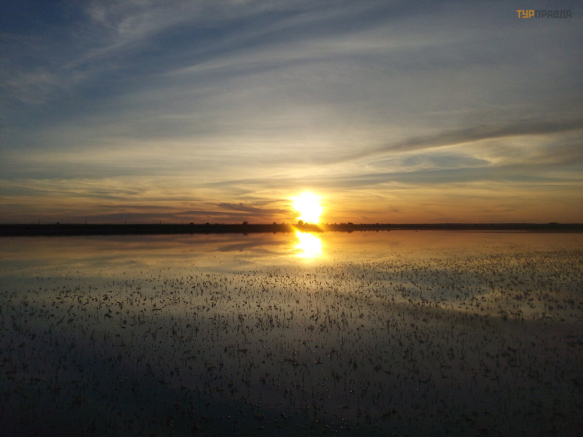 Well, at sunset, she ran, like a saiga, along the estuary, trying to capture the setting sun.