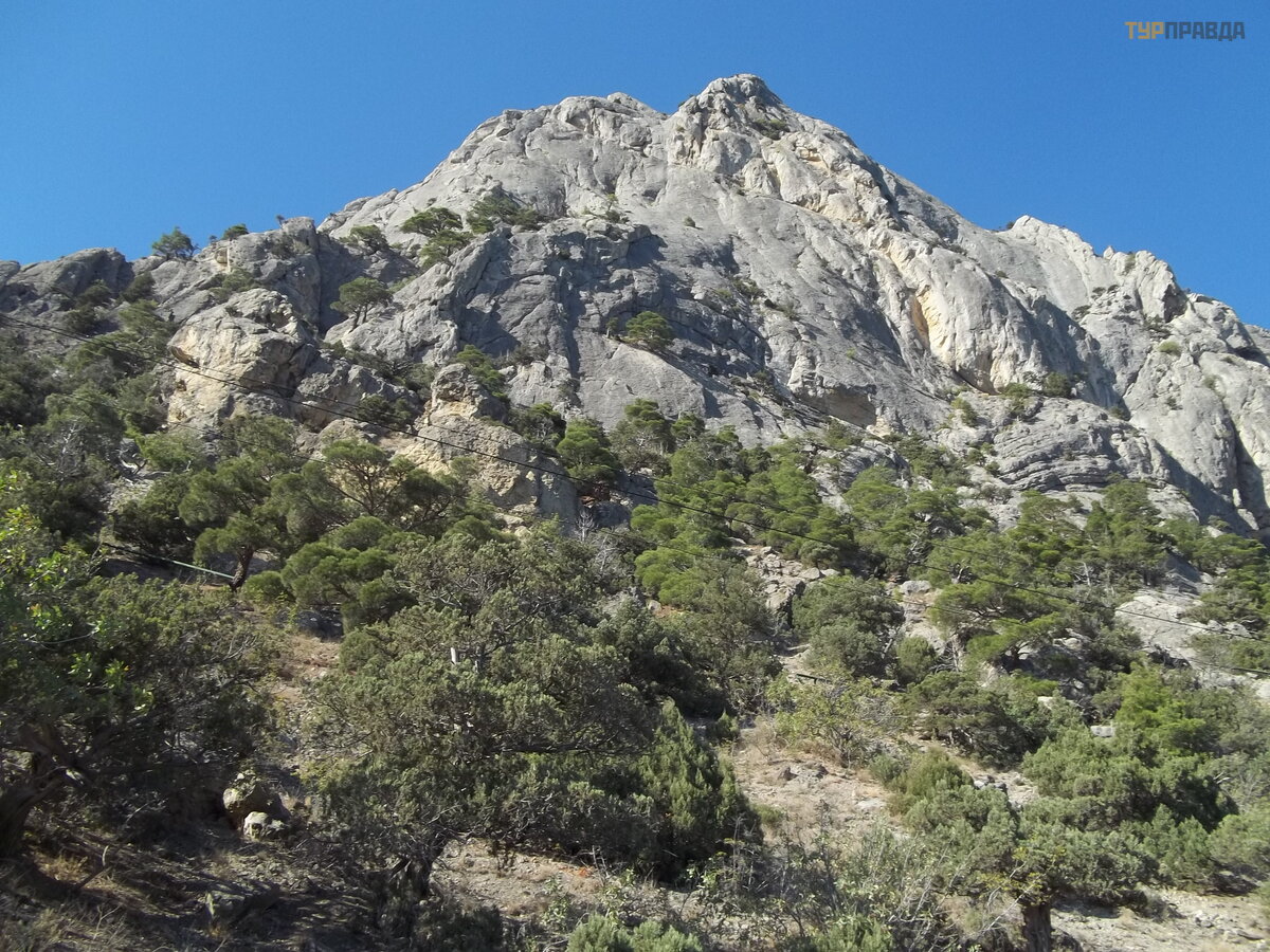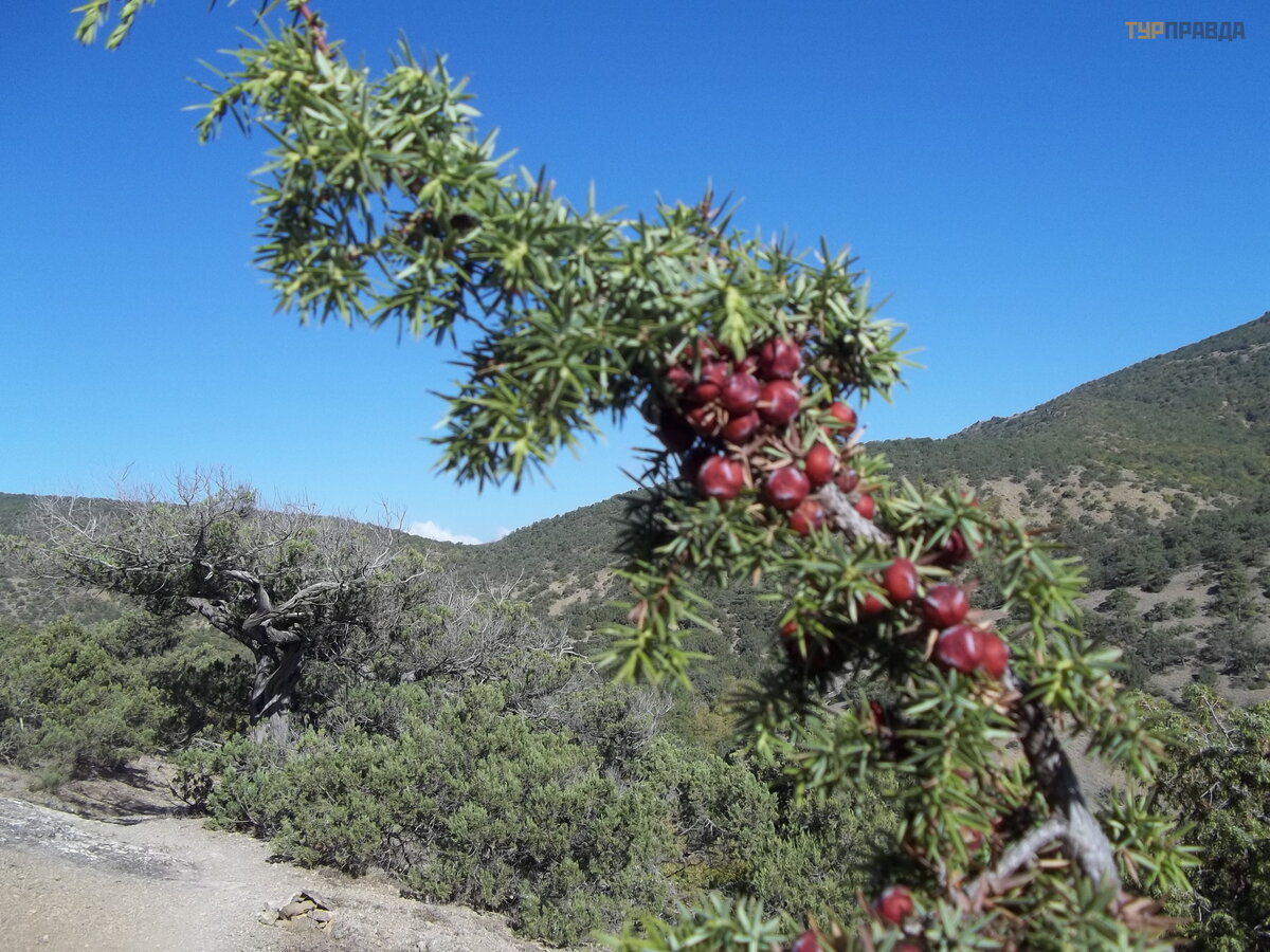 Having saved the junk, we began to climb the Sokol. To be honest, I was dazed. When I was young and reckless (about 30 years old), we climbed it every year, walked along the ridge over a steep cliff, and then went down the couloir to the Novy Svet road closer to Sudak. But the last time (in 2013) I thought that I would no longer climb there for any gingerbread. At the very top, the stones are so licked that it was not the slightest difficulty to fly into the abyss - one wrong step, and you will turn into a shapeless bloody pile at the foot. But there are guided tours to the top! Which interesting path? The average tourist would not have passed where we were shabby that time. There are a lot of trails there. Which one is safe? We went along the one that is more comfortable and trampled down. On the way we picked up a juniper bush, brightly strewn with berries.