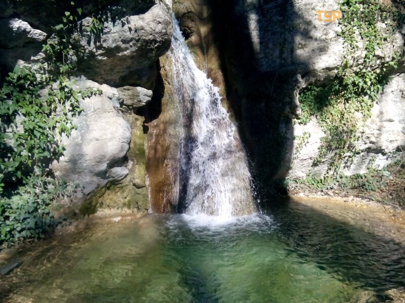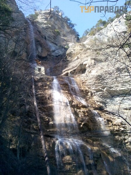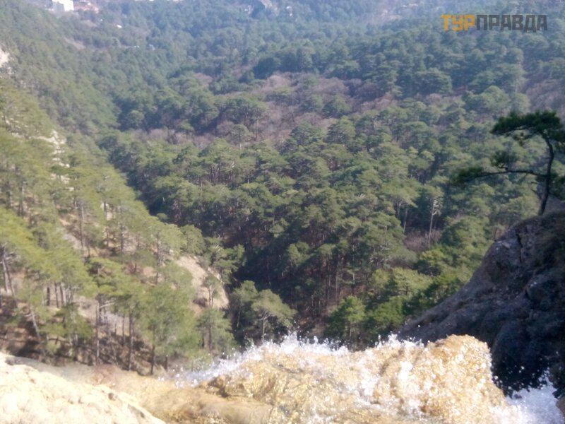 Having filmed a hyper-extreme video from the very edge of the waterfall, we went down to its foot. It was 12.50. The bus to Yalta left at 13.00 and was already parked. But after all, there were still ten minutes left, and I decided to take a quick look, what if the Wicket cooperative is not working yet and you can go to the waterfall for free? So yes, it didn’t work, and we freely approached and photographed the waterfall from this angle as well.