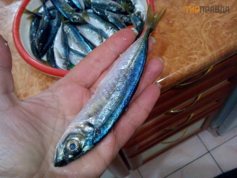 We were in Yalta at half past seven local time, found the key under the mat, threw our bags and ran to the market. We were lucky and he still worked. Prices, as it was last year, no longer shocked us. Firstly, the exchange rate of the ruble fell from 5 to 3.6, and secondly, our prices have considerably caught up with the Crimean ones. We found horse mackerel for 90 rubles (last year it cost 100-150) and fish giblets (caviar and liver) for 200 rubles. And there is no mullet! Here's a bummer! The sellers said that her season starts in April! And I can say I came for her! Okay, let's get by with the horse mackerel!