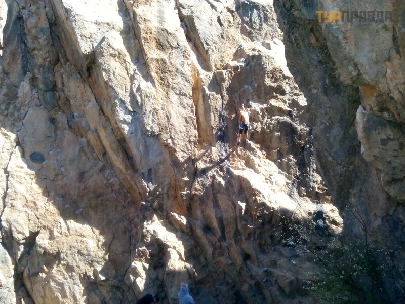 It was already close to noon, New World champagne was waiting for us in the fridge, and we were wandering around looking for who knows what! Already spitting and deciding to leave, they suddenly went to the desired object. How much happiness! Nothing special, just a few sheer cliffs, on which a climbing boy was already hanging. But it's cool that the fault is located, really at the very track. And we thrashed who knows where!