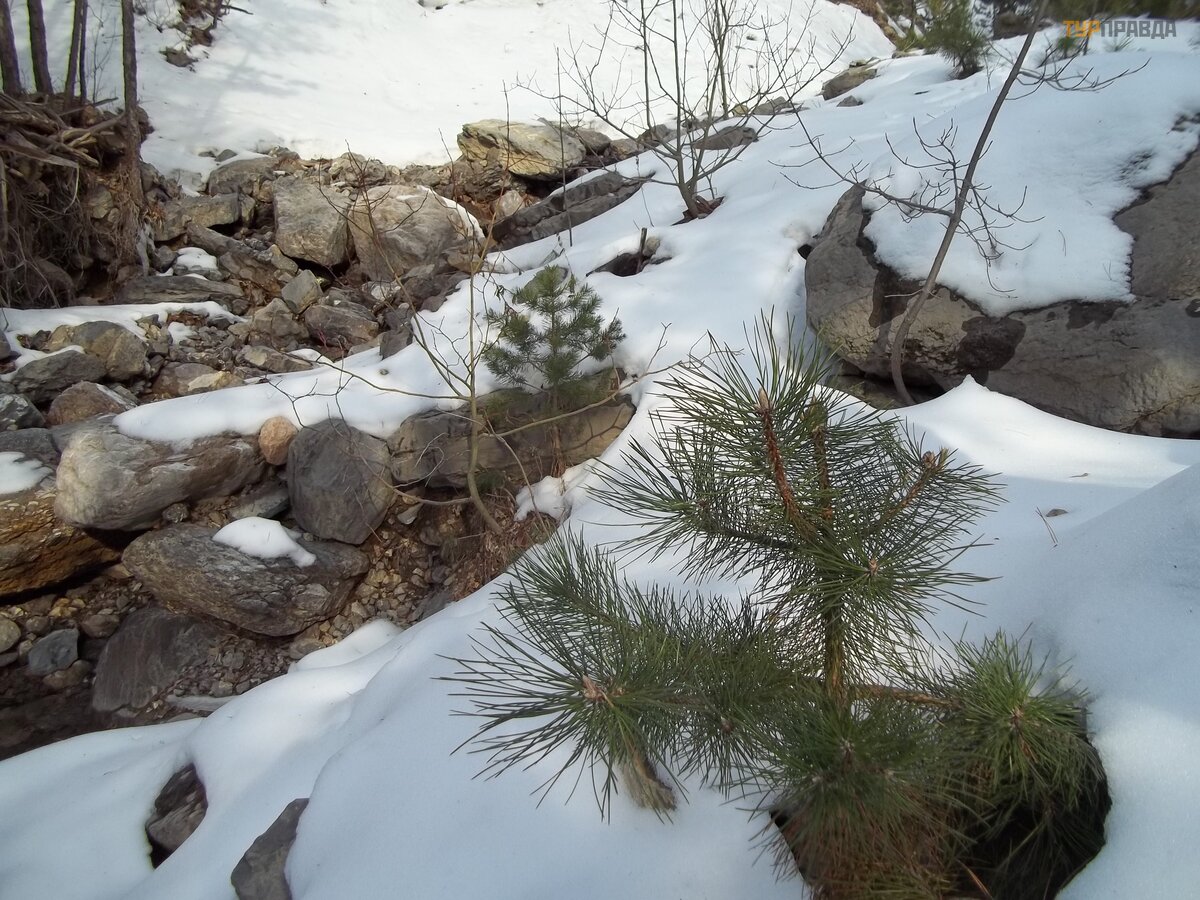 But there was snow! It's good that the nast was quite strong, and we almost did not fall through. Somewhere under the snow flowed a rocky river.