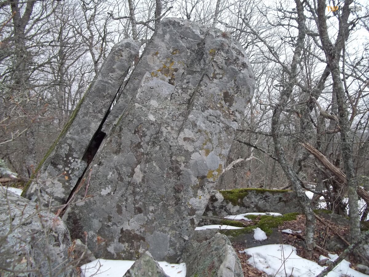 I don't remember if it was for this reason or because of laziness, but we are here and finished the route last time and went back the same way we came. Then it was absolutely dry and very warm. And now there was snow, and in some places - mud. And on them traces were clearly visible, going somewhere to the left and down. We decided to follow them, hoping to get out, nevertheless, to Partenit. Along the way, we hit a completely flat area. Probably UFOs landing here. Strange boulders rose up. Where did they come from? There was definitely nowhere for them to fall. We are almost at the top.