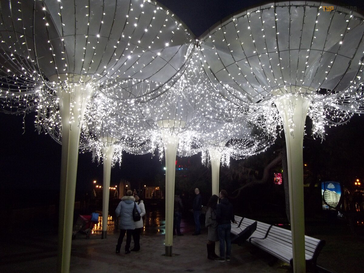 The loud sounds of a New Year's performance came from Artek. The day before, we saw several passing buses with Artek workers dressed alike in orange jackets. Like American convicts. I remember that one of my friends, who visited there at one time (I don’t know for what merits), said that they took away all their clothes and gave them official ones, down to shorts.