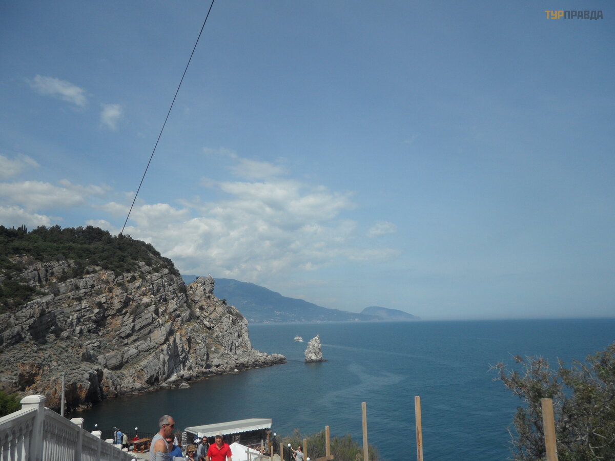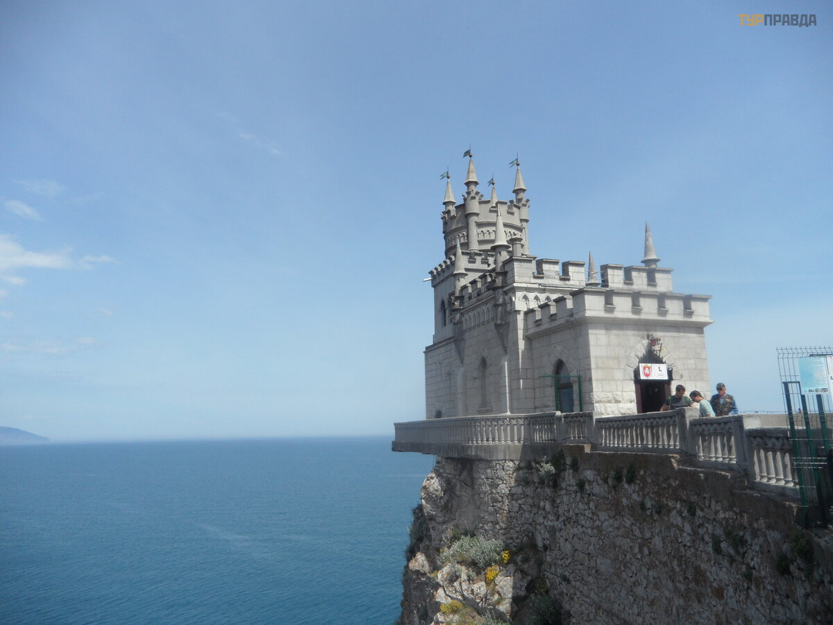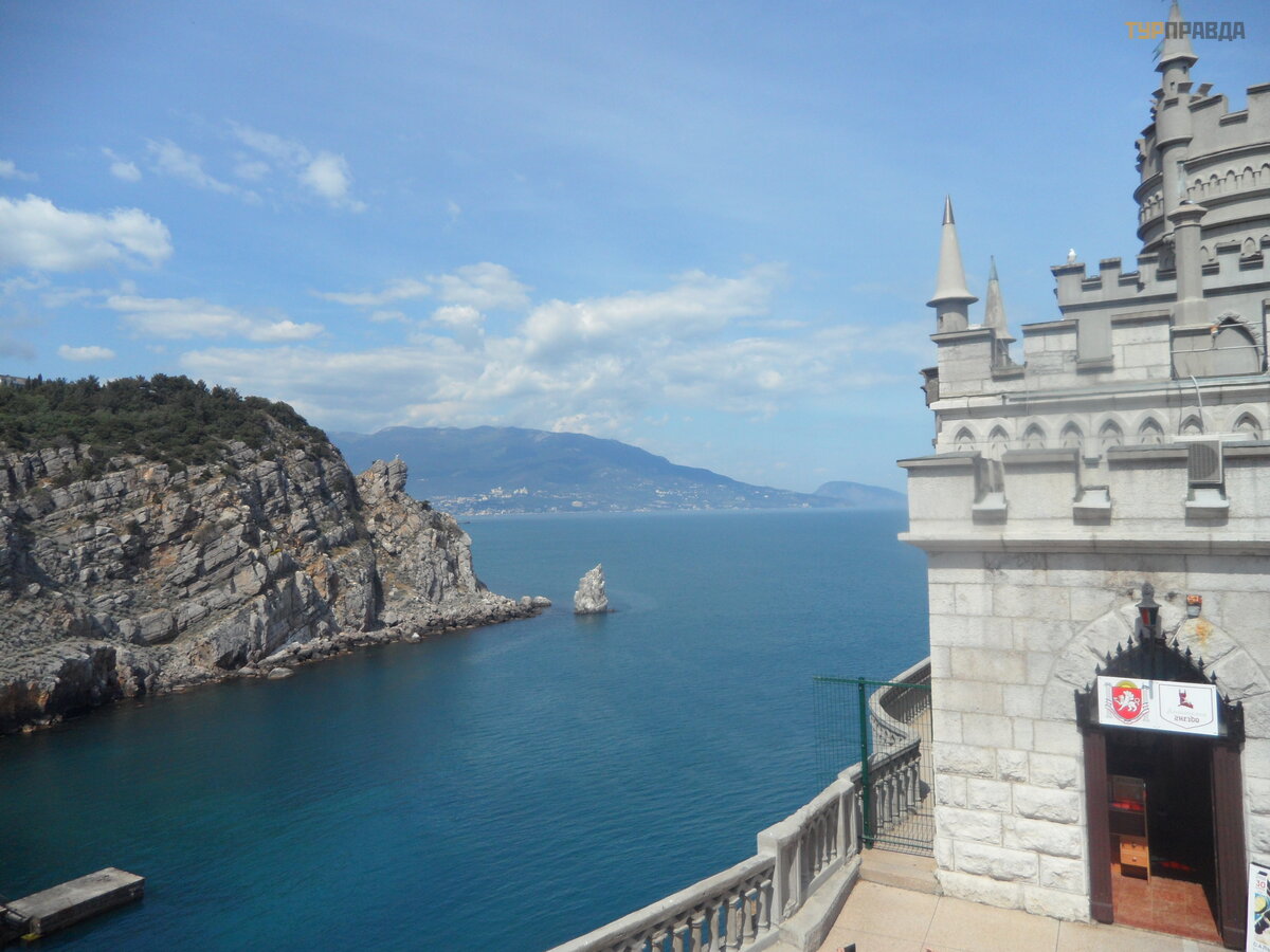 So, taking the bus near the Vorontsov Palace, and before that having drunk espresso for 50 r, by the way, this is the average price of Americano and espresso coffee for 50 r, if cappuccino, latte, etc. then 80-100. So I didn’t want to sleep as usual at lunch, and a day later we were leaving... so we decided not to waste time in vain and get to the Swallow's Nest by bus. There were many boarding houses along the way, Marat... Dyul Ber, Kurpaty and others... The road is so narrow and just stuffed sanatoriums and hotels on both sides. Leaving at the bus stop, we went down the long stairs . . there were a lot of people, someone went down, someone was already climbing up. One fat man shouted to his wife and the guide that he would not do it again not a step, or he will die! And he did not give in to the persuasion that there were several spans left. And we, like real tourists, went further up the stairs... Until we reached the SWALLOW. Entrance was free, although when I was several years ago, I had to pay. But the barrier has already been installed, apparently they plan to mow butterflies in the season. In the building itself, now koi-