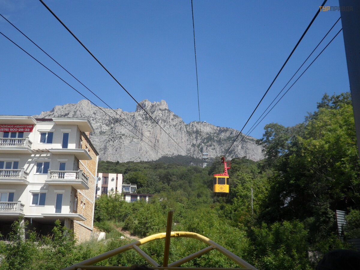 On the last day, we also decided not just to wander around Yalta, but to spend it with benefit. Again, we got on the bus at the bus station and drove towards the Miskhor-Ai-Petri cable car. The ticket office worked from 10 in the morning, we arrived at 9-40, the queue was already such that we didn’t get into the first car. I paid 350 r for a ticket, and moved towards the wind and mountains... mmm...
