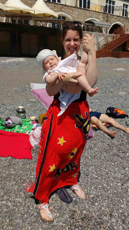 I note that the end of May-beginning of June is a great time to relax with a baby. It is not yet very hot, the sun is not yet so active, and the water is already starting to warm up.