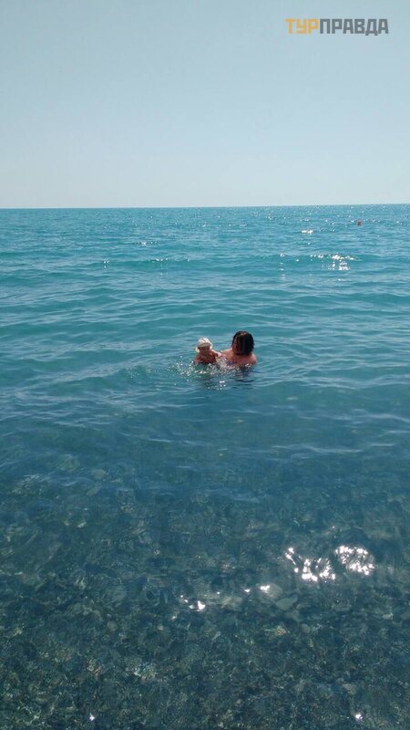 In the early days, the sea met us with clean, but not very warm water. The air temperature was +25°, but our children's thermometer showed that the water was 17 degrees. Of course, my daughters and I prepared for a meeting with open water in advance, from 2 months we go to the pool, but not so much, so only Papa was sent to the swim. For him, the water was quite acceptable for both swimming and diving. We preferred to support it from land.