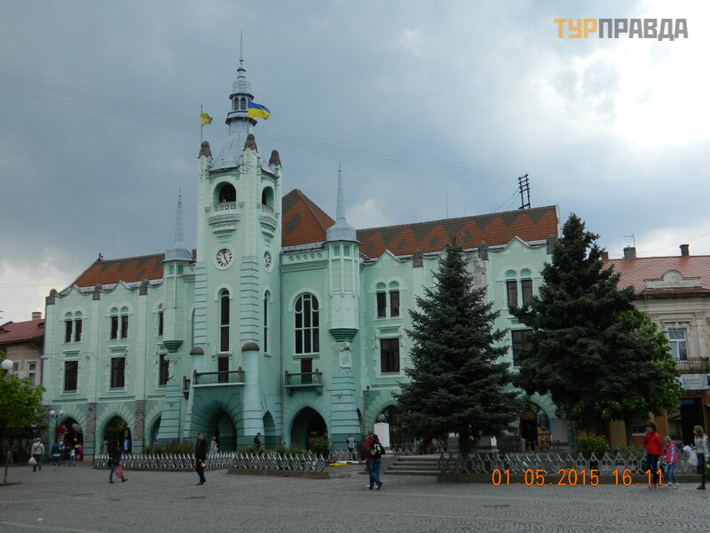 Unfortunately, this time they did not have time to visit the castle, they postponed it for the next visit. But they admired the emerald color of Mukachevo City Hall: