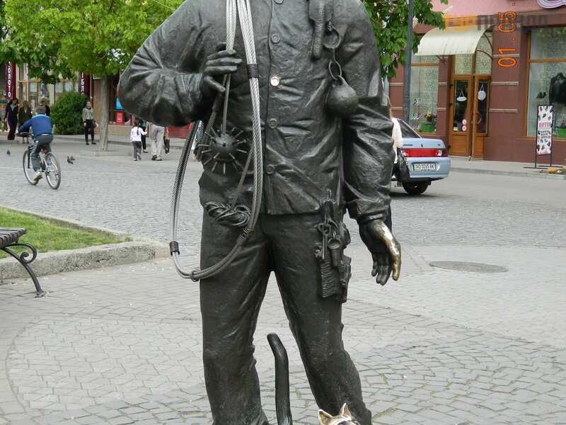 He (the monument) is a little taller than a man of average height. And the prototype - Mukachevo chimney sweep Bertalon Tovt - in life twice less (! ). And how else will you get into the chimney? ! ! I don't know if it's a fable or not, but they say that when the city authorities asked him to create a monument in his honor, Tovt's only condition was that the monument be of normal growth.