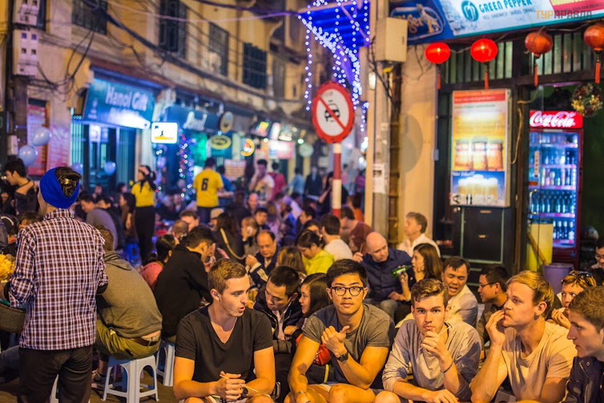 I really wanted to sit in such an authentic place, but my fellow travelers did not consider such places safe. Therefore, we found a compromise - there will be small stools, but there will be no food) We went to drink beer at the Green Pepper Beer Corner on Ta Hien Street, 27.