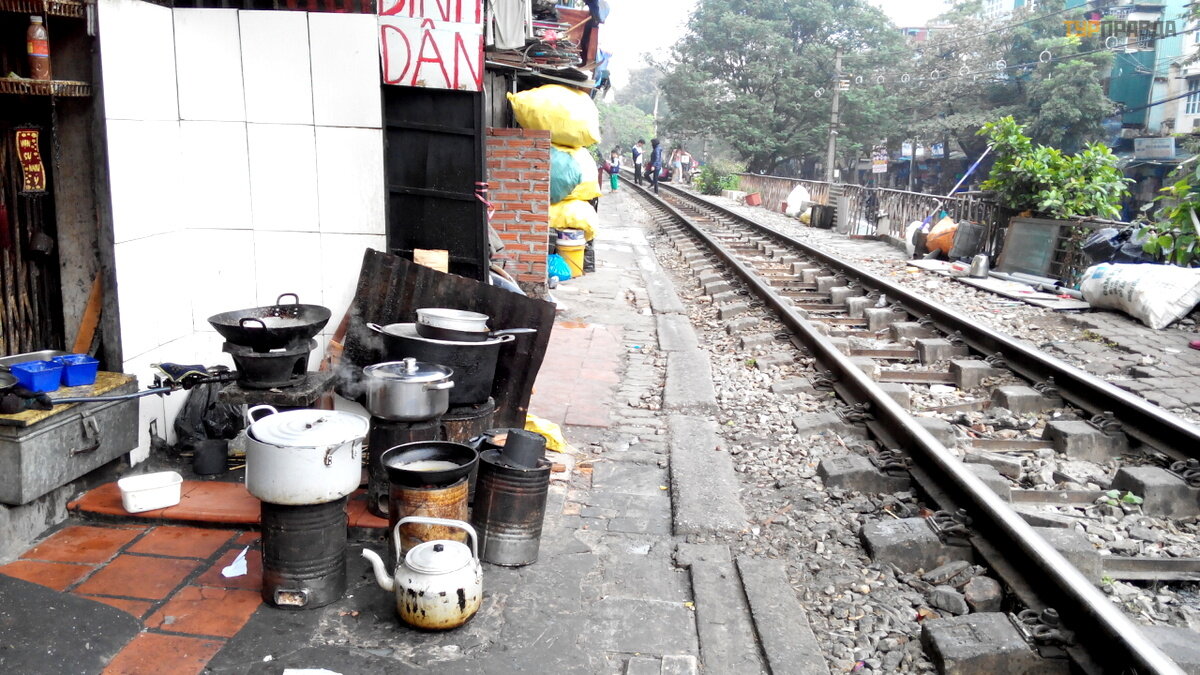I didn't manage to film the train itself, I got a little lost and walked back and forth along the railway line, so I only saw the train from the side. But on the other hand, I know for sure that trains run there) And people live. Food is prepared, as is customary in Hanoi, right on the street.