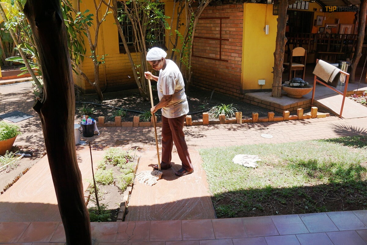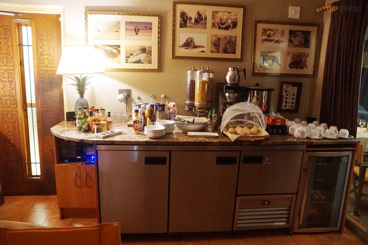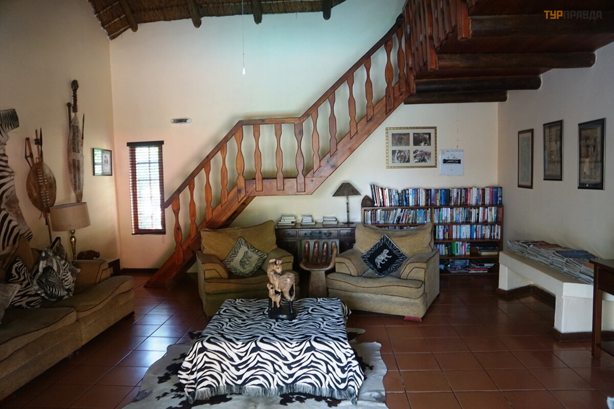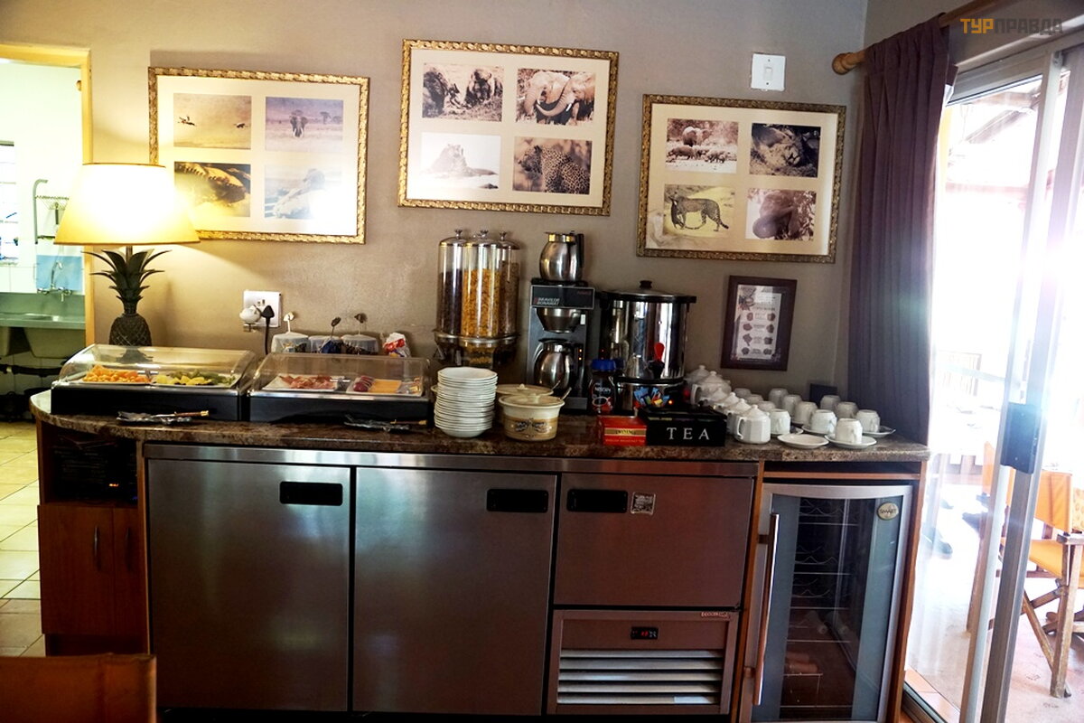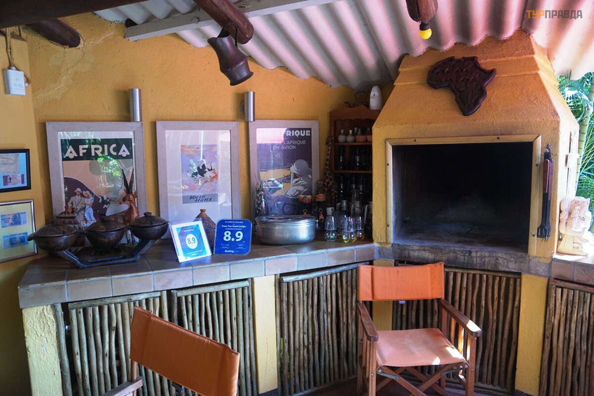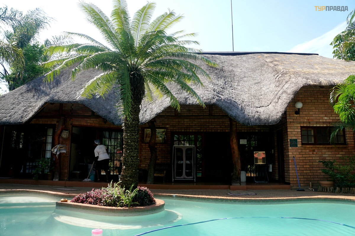 Henpecked, as they say in our village. The owner is white and she has 18 eggplants working. Here they work really well. Gave me a 980 ZAR Kruger Park safari trip with a stop in Mozambique. What was to be done? Of course, it was expensive, but there was no choice. After the safari, the second dinner was prepared even worse than the first. Everything was overcooked to the coals for 120 ZAR. On this I finished eating in the hotel cafe. Terrible food is prepared by swarthy people. I had to buy tomatoes and cucumbers with bread in the supermarket. My stomach agrees to take them. It rains often. Out of the way, but I like the silence. Loved the owner's dogs. Every day, minute by minute, they come running to my lawn in front of the window, and unanimously empty their needs in such numbers that they eat a ram and drink the water of the Crocodile River in a day.