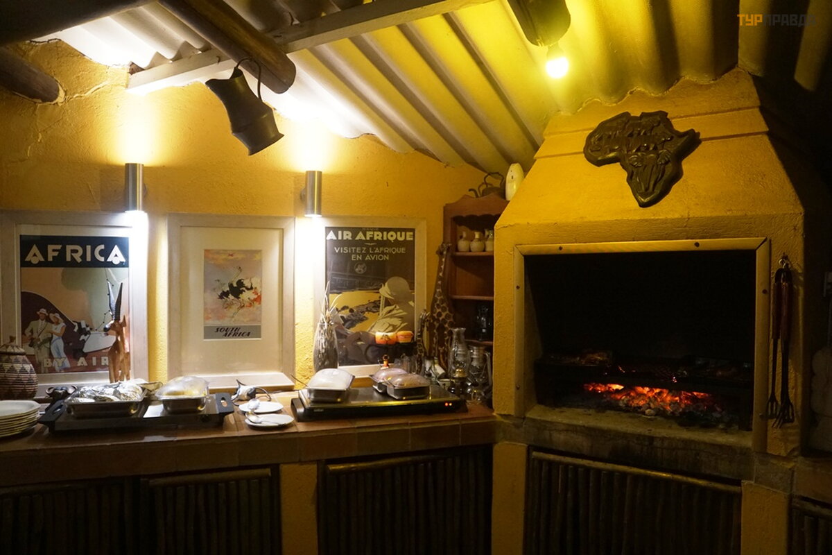 At the gate I was met by the white hostess of the hotel. Oh, she exclaimed, and I already wanted to go to meet you, although I wrote to her what time I arrive. First, she told me about the rules of residence. When her cafe is open, what is the approximate cost for breakfast and dinner. She showed me the territory, and settled in my room, a separate house, standing in the shade. I liked everything, and the price too, but it could be cheaper, since the water in the pool is cloudy and in the leaves. I booked hotels in Africa through Booking. com from Novorossiysk. There you see in the photo one thing, but here you see the real thing. Expensive, but everything is there. In the evening I was lassoed for a candlelit dinner. Everything was beautiful and smelled delicious. When food was served for 100 ZAR, I realized that the products from the supermarket were not the first freshness.