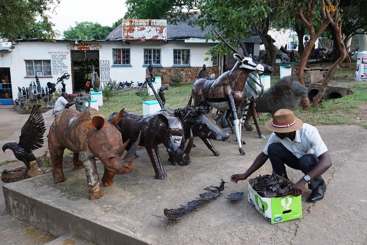 The city of Victoria Falls has been built and is being built somehow chaotically. Whoever wants what he wants, then builds as he wants, if the local chief is given money. I was amazed by the mass production of various figures from everything that is found. Some sculptures delight his artist, because they are made by simple, heavily tanned residents who have become masters of their craft. Apparently, there are more sculptures in this city than in all of Africa.